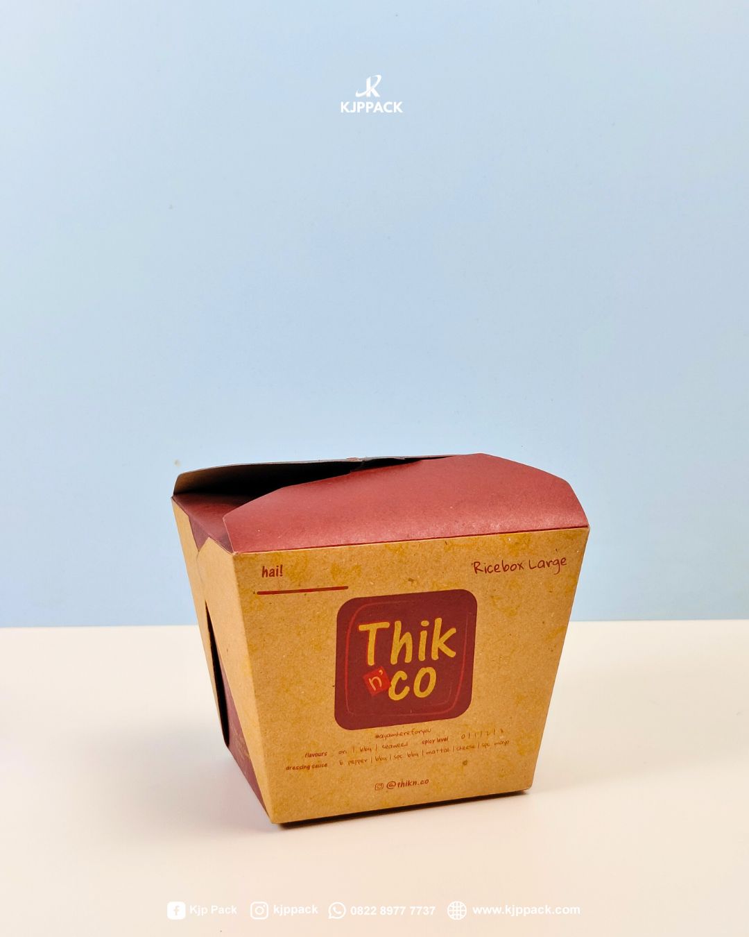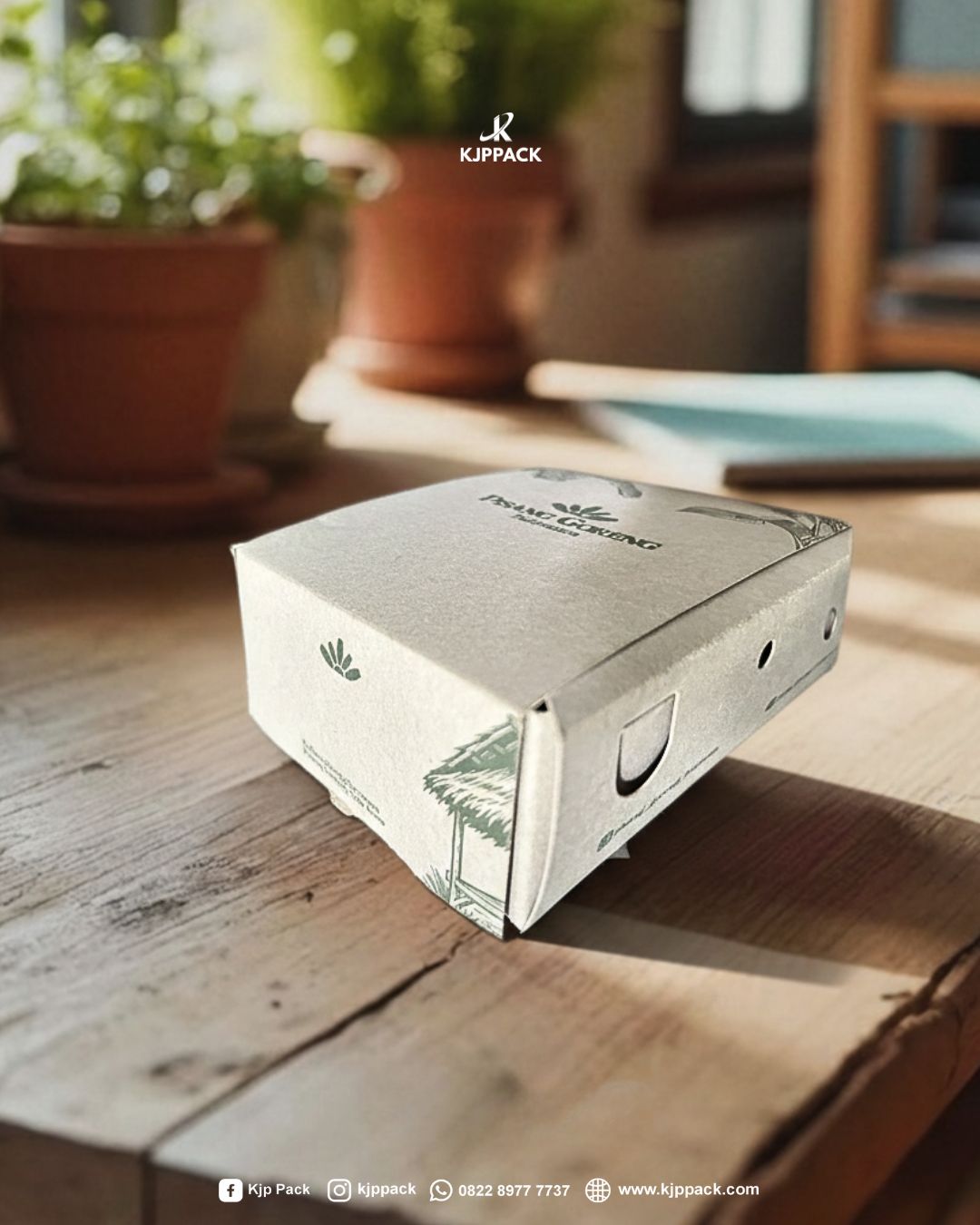 KJPPACK juga dikenal sebagai vendor percetakan kemasan custom yang melayani kebutuhan branding bisnis Anda. Kemasan yang kami sediakan menggunakan bahan berkualitas tinggi seperti Kraft (coklat natural) dan Eco White/Ivory (putih premium). Dengan layanan custom desain logo dan ukuran serta pelayanan yang responsif, Anda dapat mencetak kemasan produk sesuai identitas brand Anda secara mudah. Tim kami siap membantu memberikan solusi pengemasan terbaik.